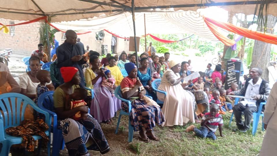 Ἡ χαρά τῶν χριστιανῶν τῆς Rugasha, πού συγκεντρώθηκαν στό οἰκόπεδο, πού ἀγοράσθηκε. Ἕκαναν Λειτουργία στίς 5/4 καί μετά πῆγαν καί ἔβαλαν τήν πινακίδα μέ τό ὄνομα προστάτου τῆς Ἐνορίας.