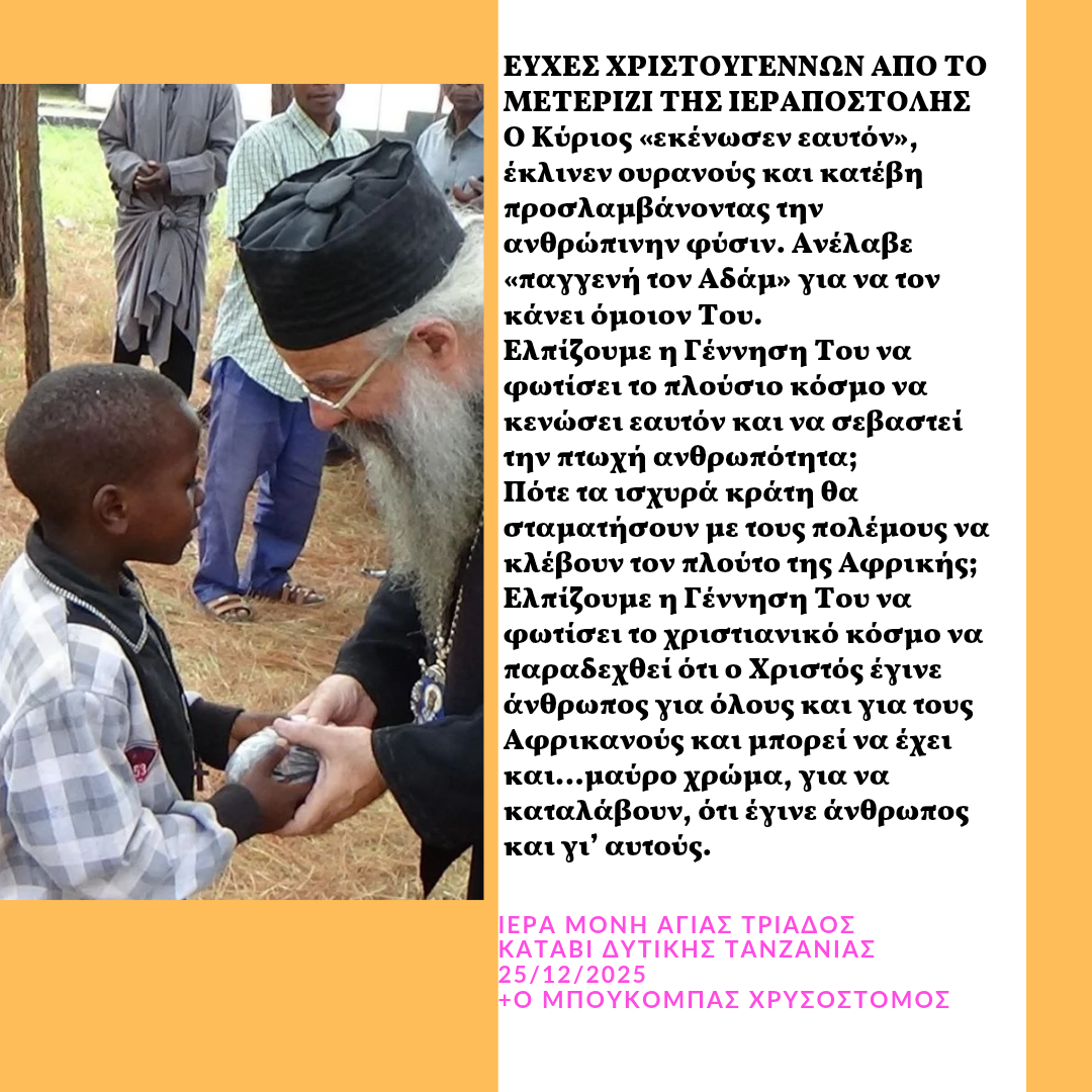 ΕΥΧΕΣ ΧΡΙΣΤΟΥΓΕΝΝΩΝ ΑΠΟ ΤΟ ΜΕΤΕΡΙΖΙ ΤΗΣ ΙΕΡΑΠΟΣΤΟΛΗΣ